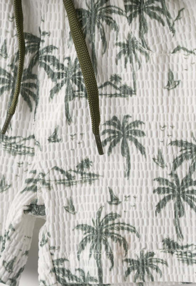 Ένα καλοκαιρινό και στιλάτο παιδικό σετ 3 τεμαχίων για αγόρια από τη Hashtag, ιδανικό για δροσερές και άνετες εμφανίσεις στις διακοπές και τις καθημερινές βόλτες. Το σετ περιλαμβάνει κοντομάνικο t-shirt, πουκάμισο με κουμπιά και ασορτί βερμούδα, δημιουργώντας ένα ολοκληρωμένο καλοκαιρινό outfit.Το πουκάμισο και η βερμούδα ξεχωρίζουν με το τροπικό σχέδιο με φοίνικες που χαρίζει καλοκαιρινή διάθεση. Το t-shirt εσωτερικά διαθέτει διακριτικό τύπωμα, προσφέροντας extra στυλ όταν φορεθεί μόνο του. Η βερμούδα με ελαστική μέση και κορδόνι εξασφαλίζει άνετη εφαρμογή και ελευθερία κινήσεων.Κατασκευασμένο από ελαφριά και φιλικά προς το παιδικό δέρμα υφάσματα, αποτελεί ιδανική επιλογή για ζεστές ημέρες.