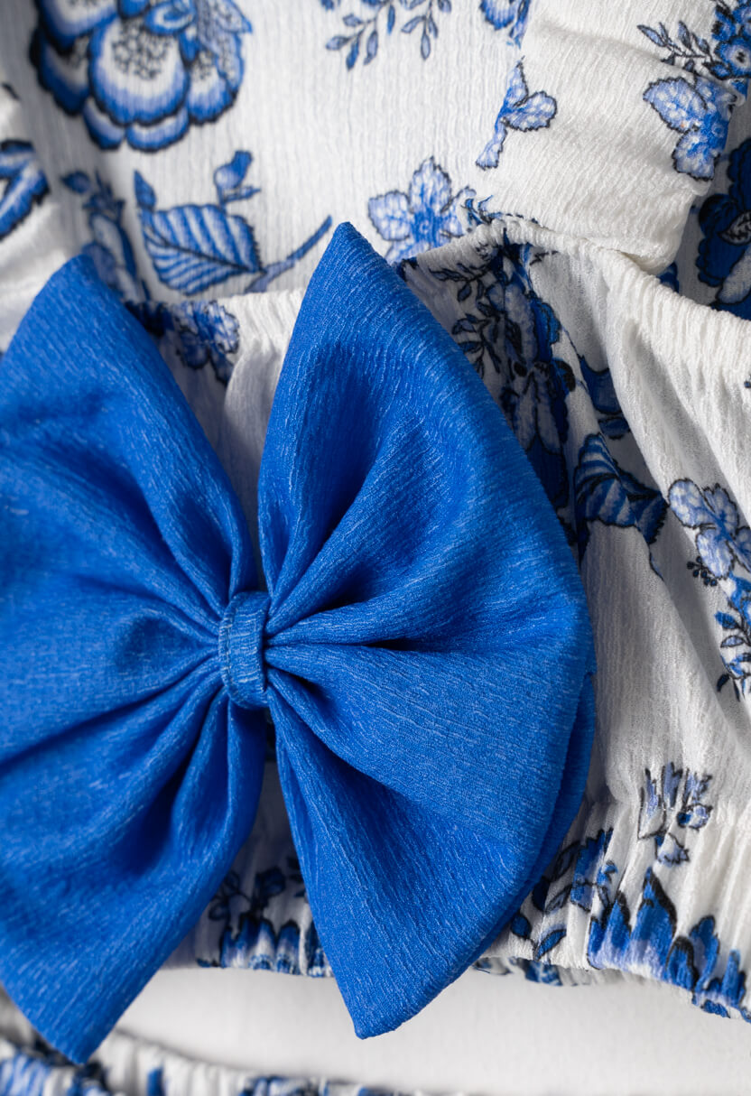 Καλοκαιρινό σετ που αποτελείται από μπλούζα με τύπωμα σε συνδυασμό με σορτς με λάστιχο στην μέση.